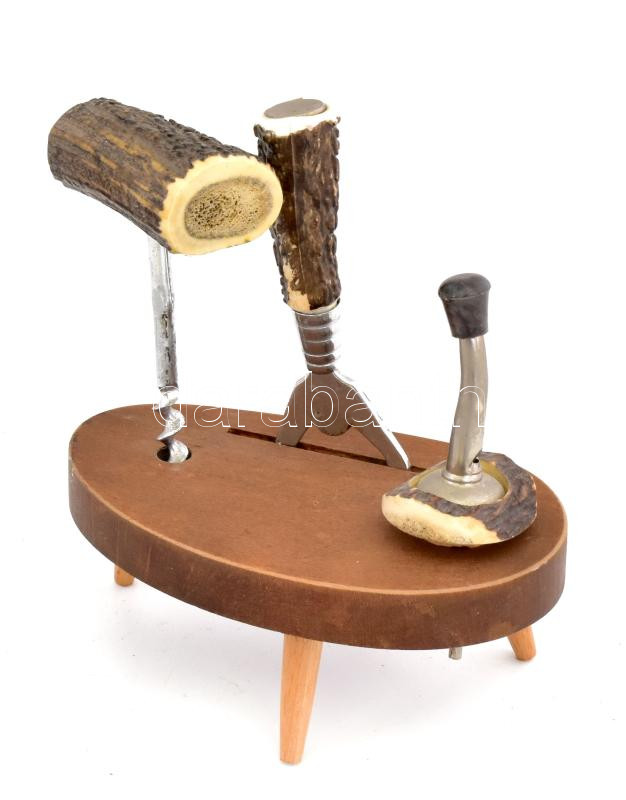 Leírás: Retro agancs italnyitó szett fa tartón