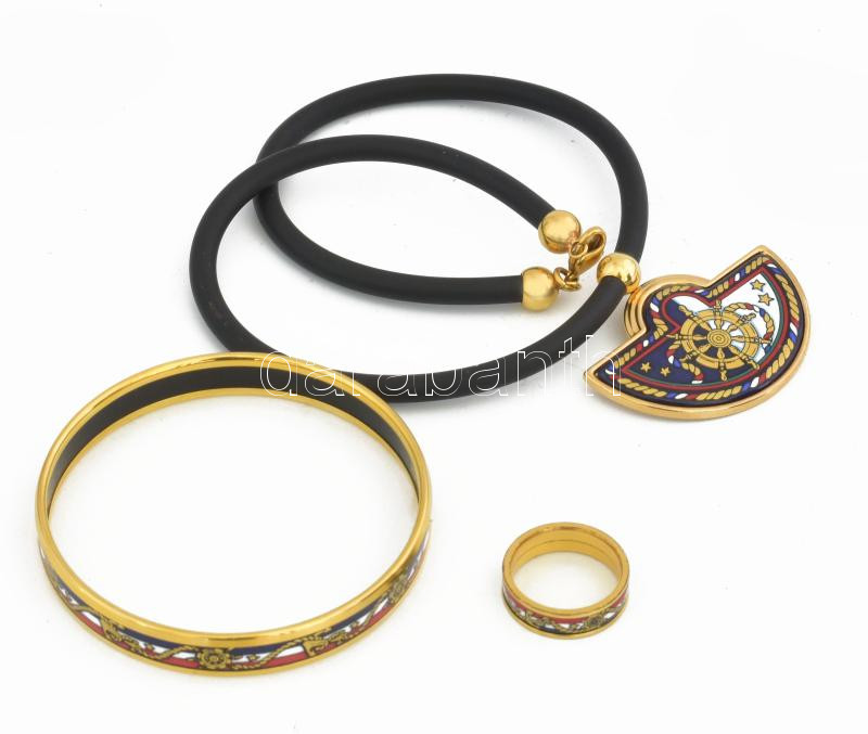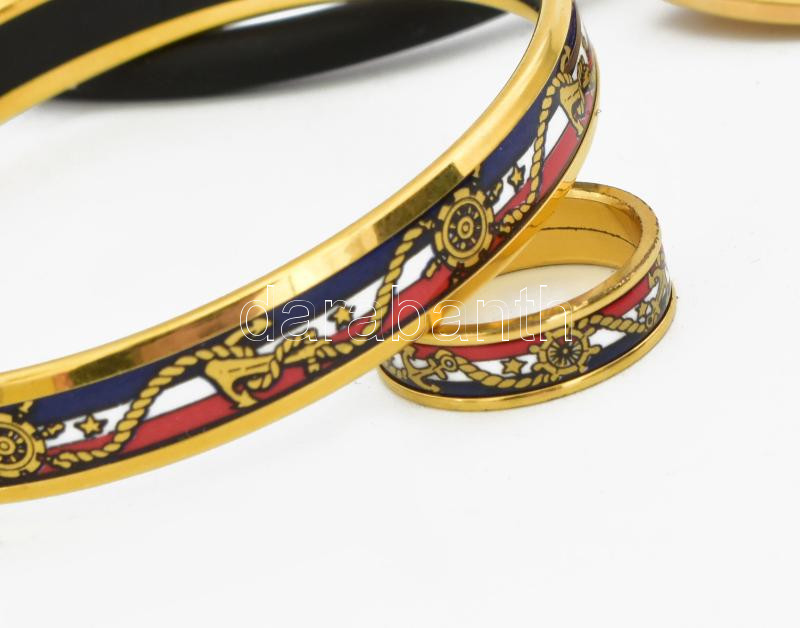 Leírás: Michaela Frey 3 darabos kollekció: nyakék, gyűrű, karperec, díszdobozban. Hajós témájú díszítéssel.