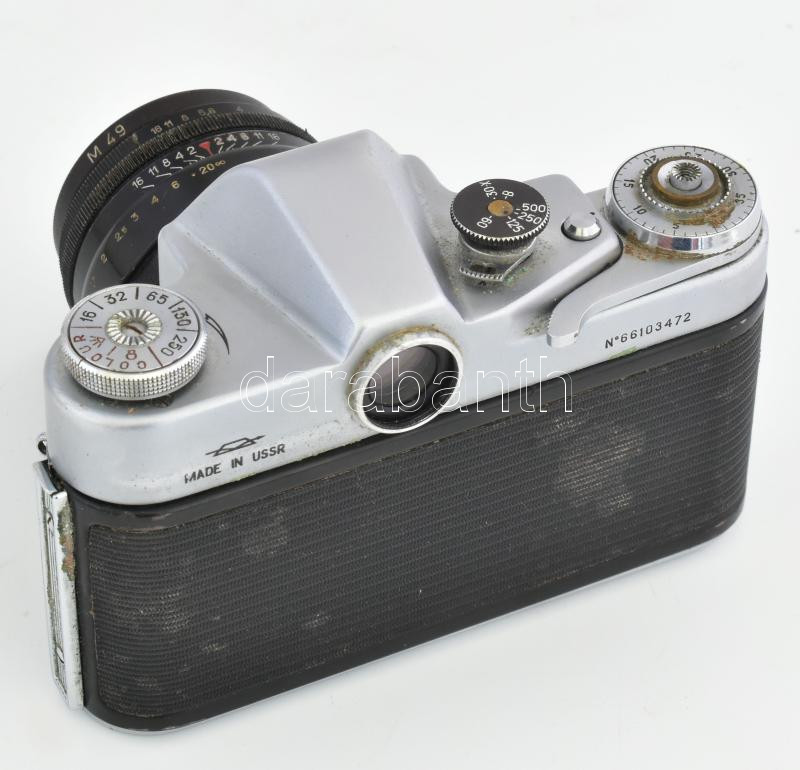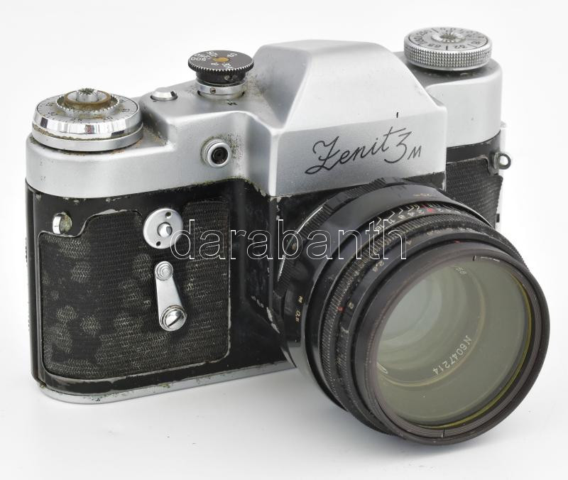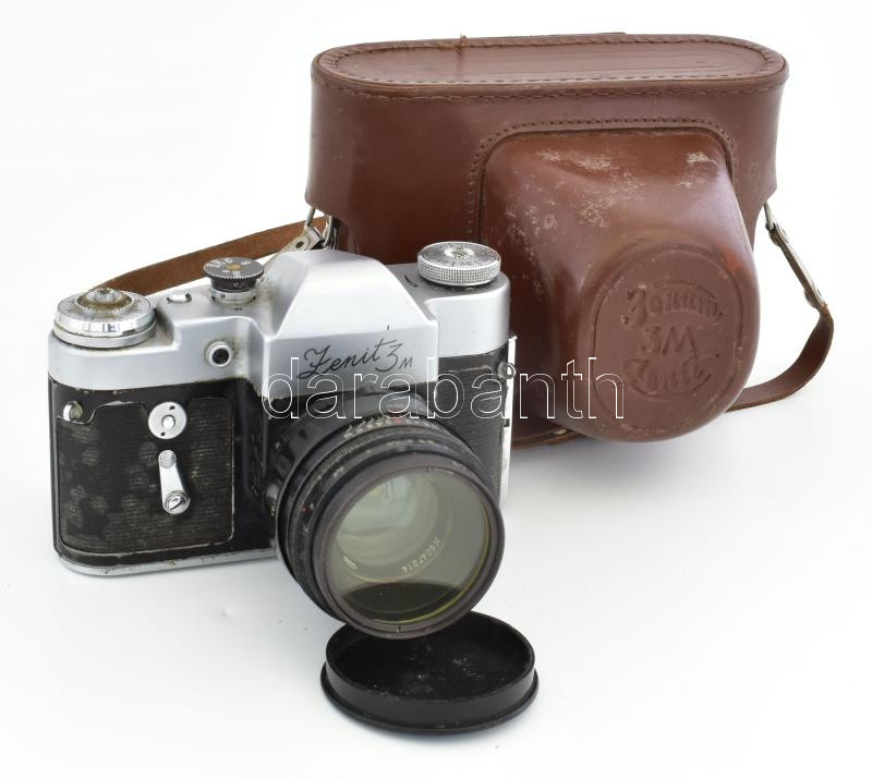 cca 1970 Zenit 3M fényképezőgép, Helios-44 2/58 objektívvel, eredeti k... https://www.darabanth.com/hu/457-Gyorsarveres/457.0/Mutargy-papirregiseg-egyeb/Fenykepezogepek-kamerak-kellekek~500015/cca-1970-Zenit-3M-fenykepezogep-Helios-44-258-objektivvel-eredeti-kisse-serult-bor-tokjC3~II3039862