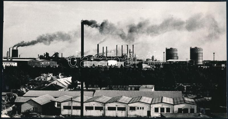 cca 1972 Orbán József tapolcai fotóművész ,,Dunaújvárosi látkép" című, feliratozott, vintage fotóművészeti alkotása, ezüst zselatinos fotópapíron, 10,8x20,8 cm