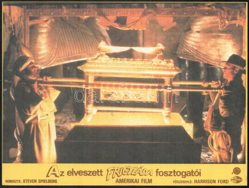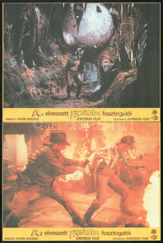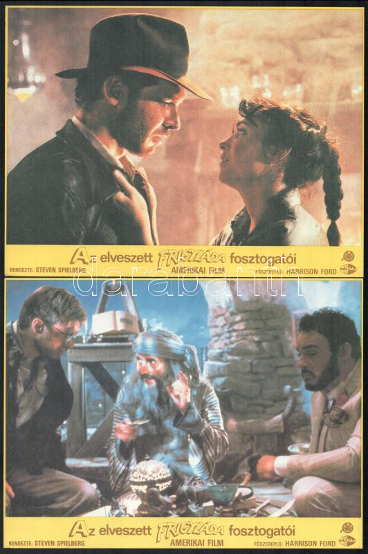cca 1981 ,,Az elveszett frigyláda fosztogatói" című amerikai film jelenetei és szereplői, 5 db produkciós filmfotó nyomdatechnikával sokszorosítva kartonpapírra (nyomat), egyoldalas nyomással, a használatból eredő (esetleges) kisebb hibákkal, 18x24 cm