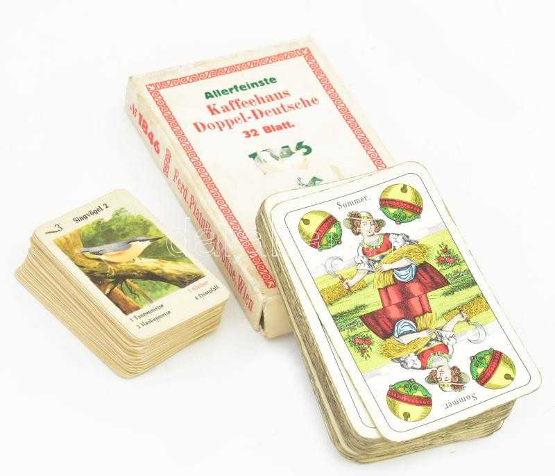 3 csomag régi kártya, Piatnik dobozával, magyar kártya, madaras kártya https://www.darabanth.com/hu/457-Gyorsarveres/457.0/Mutargy-papirregiseg-egyeb/Jatekok~500017/3-csomag-regi-kartya-Piatnik-dobozaval-magyar-kartya-madaras-kartya~II2994101