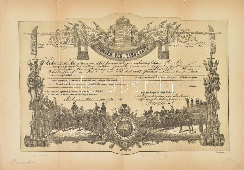 1883 Debrecen, Honvéd végelbocsátó levél a 39. gyalogezredben szolgált... https://www.darabanth.com/hu/457-Gyorsarveres/457.0/Mutargy-papirregiseg-egyeb/Militaria~1500011/1883-Debrecen-Honved-vegelbocsato-level-a-39-gyalogezredben-szolgalt-gyalogos-szamara~II3058558