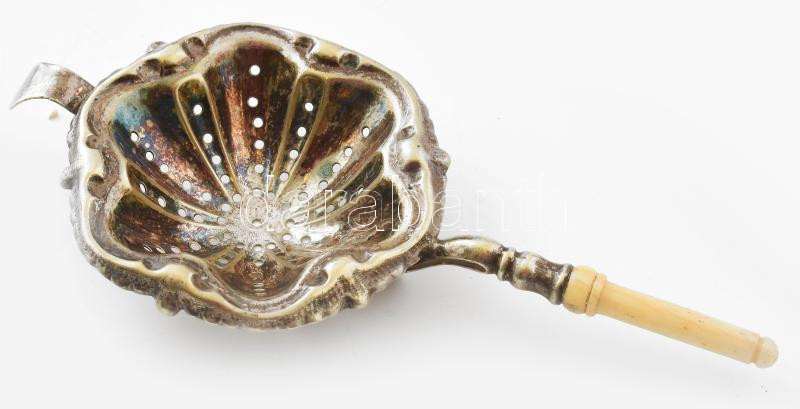 Antik teaszűrő csont nyéllel. Ezüstözött 16 cm https://www.darabanth.com/hu/457-Gyorsarveres/457.0/Mutargy-papirregiseg-egyeb/Mutargyak-antikvitas~500011/Antik-teaszuro-csont-nyellel-Ezustozott-16-cm~II3052903