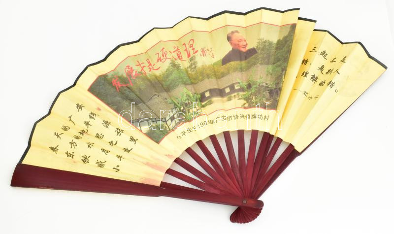 Leírás: Kínai legyező Teng-Hsziao Ping főtitkárral és a katonai felső vezetés tagjaival, h: 33,5 cm