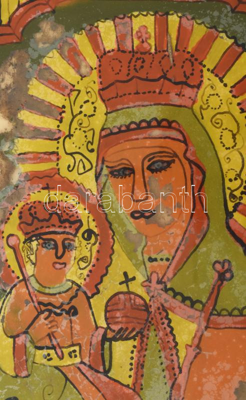 Leírás: Üvegikon. 19. sz. vége, Dél-Erdély, román ortodox ikonfestő, üveglapra festett, kopott, 42x25 cm
