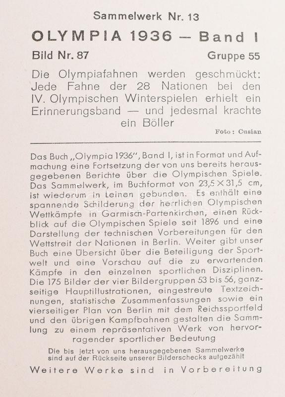 Leírás: 1936 Gyűjtőképek a Berlini Olimpiáról 1-87-ig sorszámozva, 17x12 és 12x8 cm