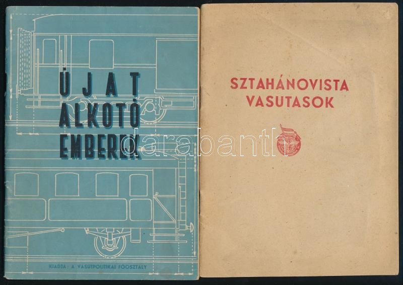 Leírás: cca 1950 2 db Rákosi korabeli propaganda kiadvány: Sztahánovista vasutasok, Újat alkotó emberek.