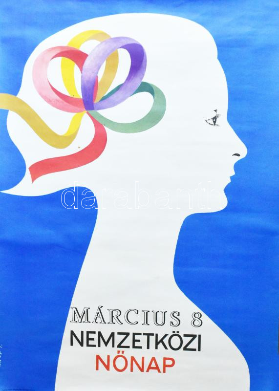 Leírás: Zala Tibor (1920-2004): Március 8. Nemzetközi Nőnap, propaganda plakát, Bp., Offset-ny., feltekerve, 97x68 cm