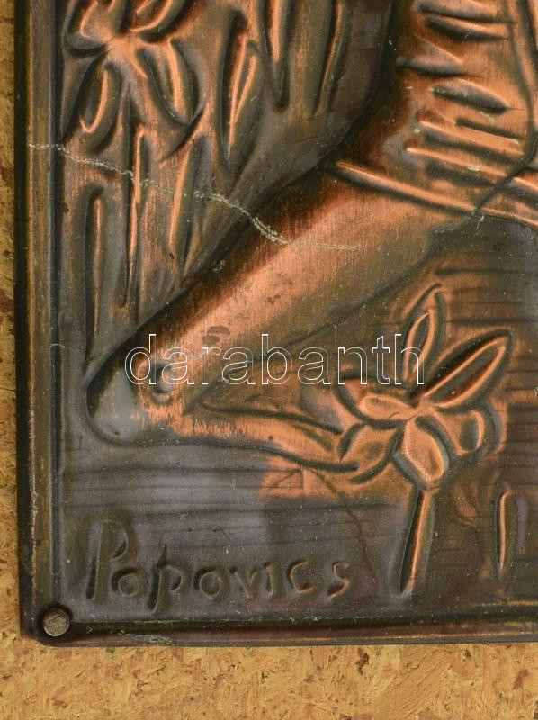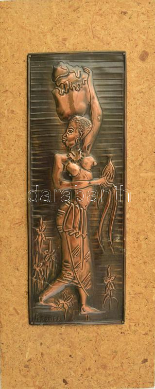 Leírás: Popovics jelzéssel: Afrikai nő. Domborított rézlemez, fa táblán, 24x9 cm