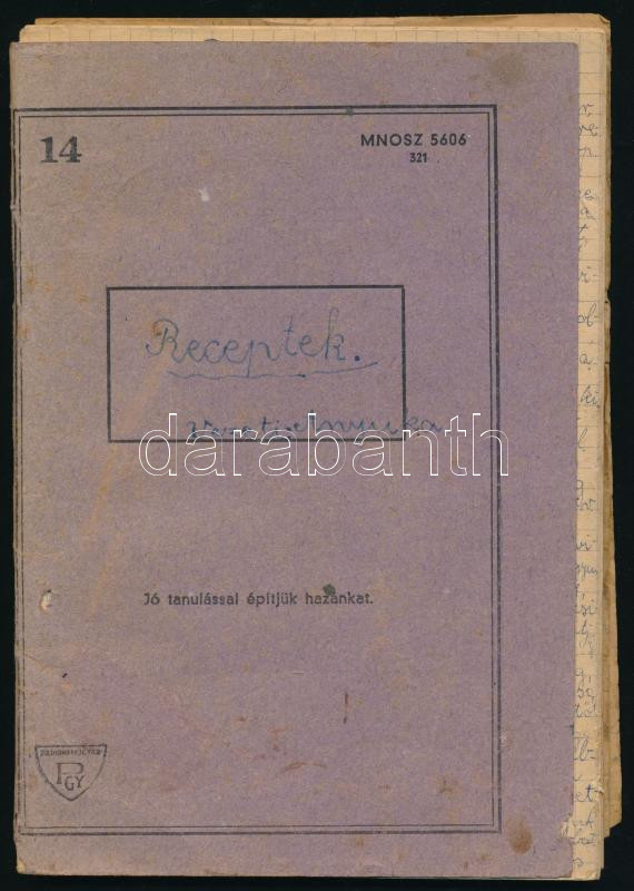 cca 1950-60 régi kézzel írt receptes füzet számos édesség, sütemény és... https://www.darabanth.com/hu/457-Gyorsarveres/457.0/Mutargy-papirregiseg-egyeb/Tortenelmi-dokumentumok-keziratok-erdekessegek~500029/cca-1950-60-regi-kezzel-irt-receptes-fuzet-szamos-edesseg-sutemeny-es-torta-recepttel~II3060223