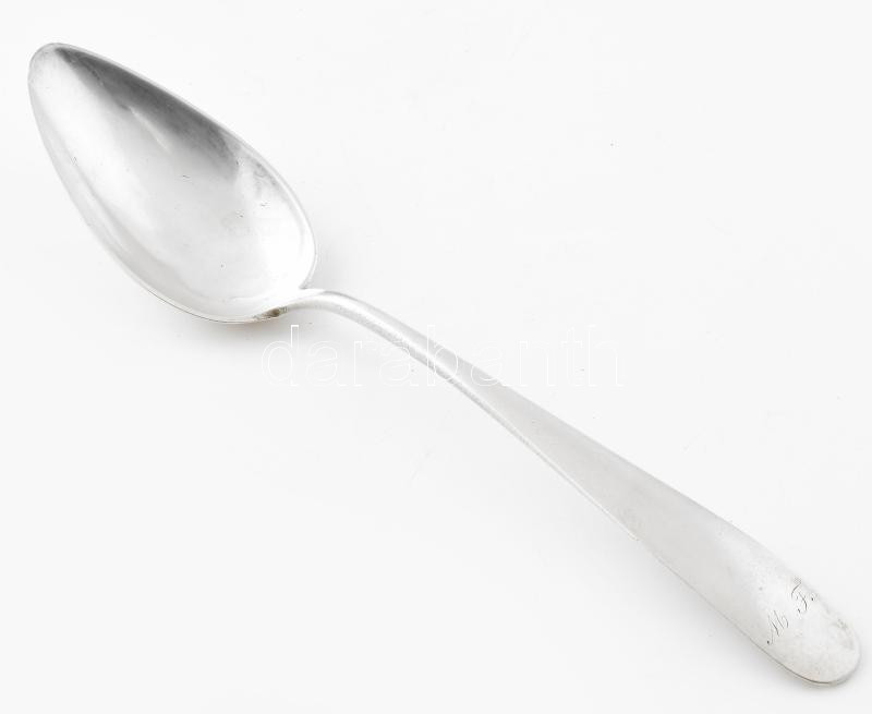 Leírás: Antik ezüst tálaló kanál Pest, 1842 Szteuner? mesterjeggyel 88 g