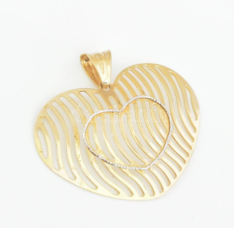 Leírás: Arany (Au) 14K áttört szív medál, jelzett, 3,5×3 cm, nettó: 2,1 g