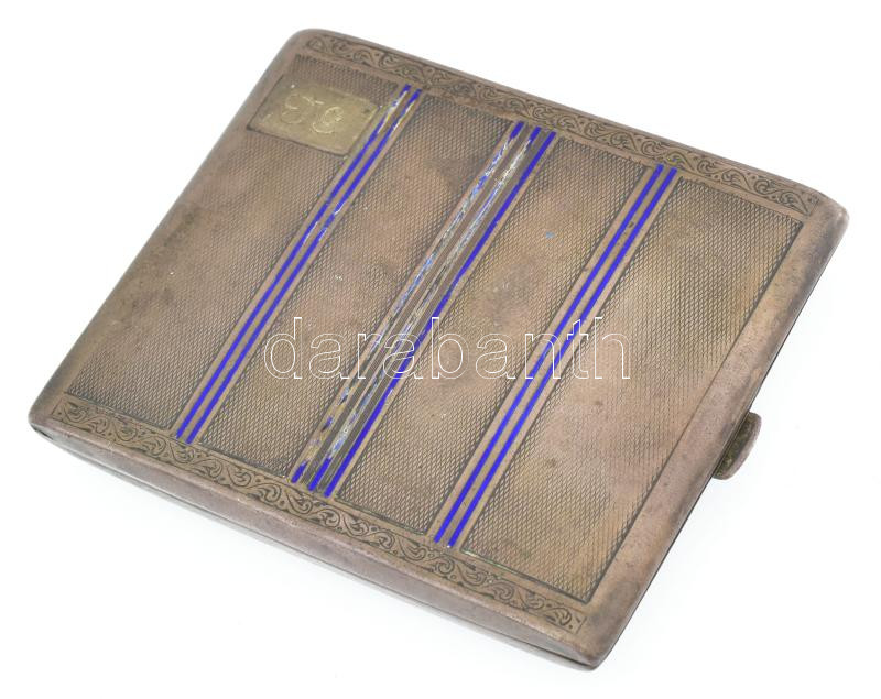 Leírás: Ezüst (Ag) cigarettatárca. sérült zománc díszítéssel, jelzett, 111 g 8x10 cm