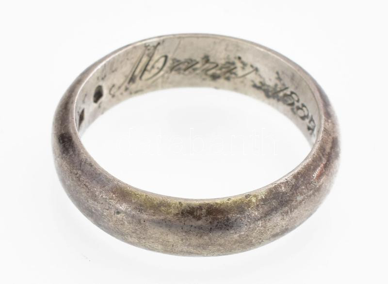 Leírás: Ezüst(Ag) gyűrű, jelzett, belsejében felirattal, méret: 63, nettó: 8 g