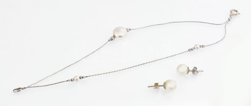 Leírás: Ezüst(Ag) karkötő gyöngy díszítéssel + gyöngy fülbevalópár, jelzett, h: 18 cm, bruttó: 3,7 g