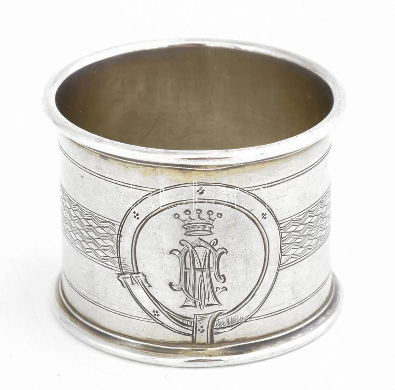 Leírás: Ezüst(Ag) monogramos szalvétagyűrű, jelzett, d: 4,5 cm, nettó: 25 g