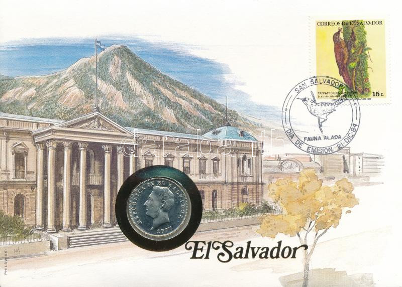 El Salvador 1977. 10c Ni-sárgaréz "Francisco Morazan" felbélyegzett borítékban, bélyegzéssel, német nyelvű leírással T:UNC El Salvador 1977. 10 Centavos Ni-brass "Francisco Morazan" in envelope with stamp and cancellation, with German description C:UNC