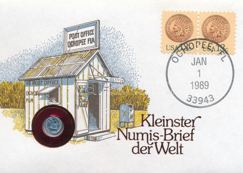Portugália 1985. 5E Cu-Ni minipénz "A világ legkisebb érmés borítékja" érmés borítékban, bélyeggel, bélyegzéssel, német nyelvű leírással T:UNC