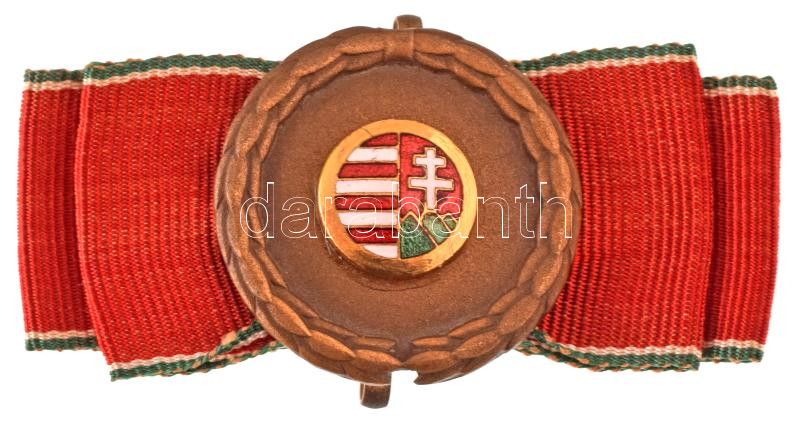 1948. "Köztársasági Elnök Elismerésének Bronz Koszorúja" aranyozott bronz kitüntetés szalaggal, nem adományozott, feltehetően az 1980-as években a Pénzverőben készült példány T:UNC / Hungary 1948. "Bronze Wreath of Commendation of the President of the Republic" gilt plated bronze decorations, unawarded, later pieces from the 1980's C:UNC NMK 519.