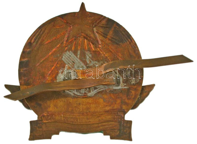 Leírás: 1950. Rákosi-címeres zománcozott vasutas sapkajelvény (51x49mm) T:AU,XF / Hungary ~1950. Enamelled railwayman cap badge with Rákosi coat of arms (51x49mm) C:AU,XF
