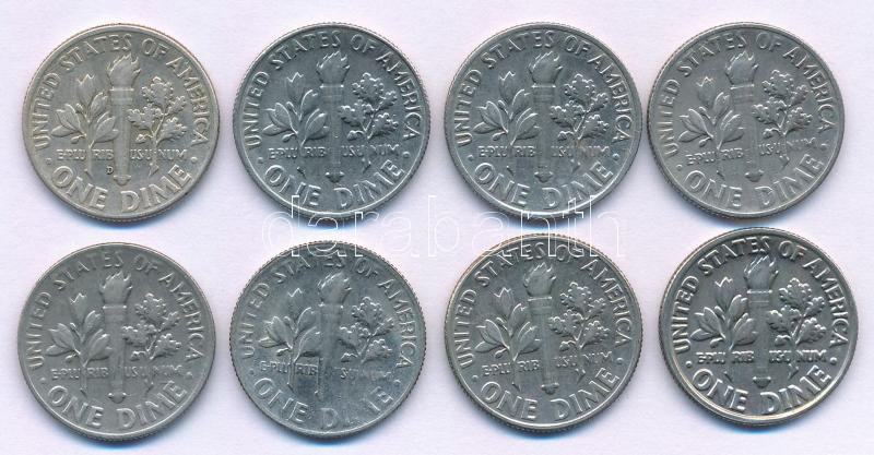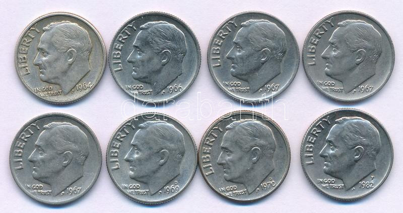 USA 1964-1982. 1 Dime (10 Cents) "Roosevelt" (8pcs/6xdiff) one of them is Ag C:AU-VF