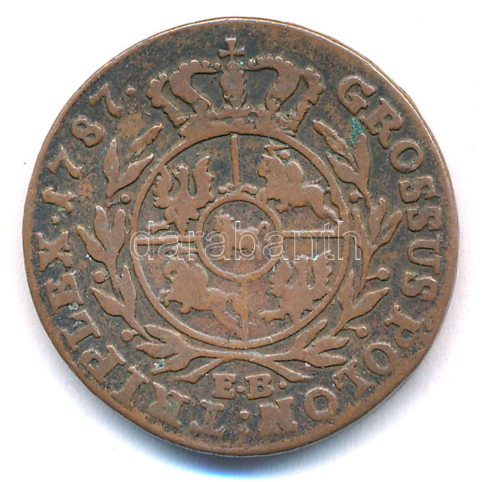 Leírás: Lengyel-Litván Nemzetközösség 1787EB 3gr Cu "II. Szaniszló Ágost" T:3 patina