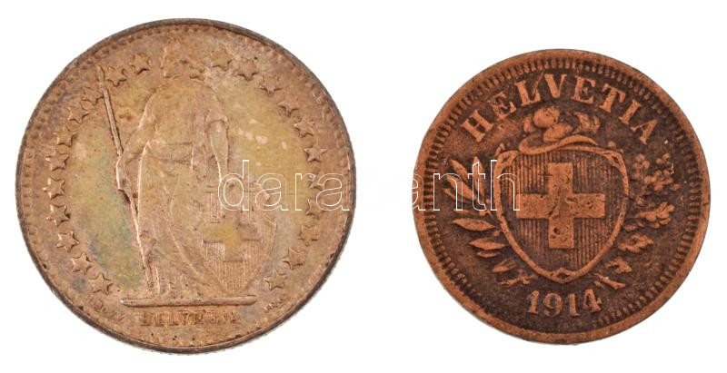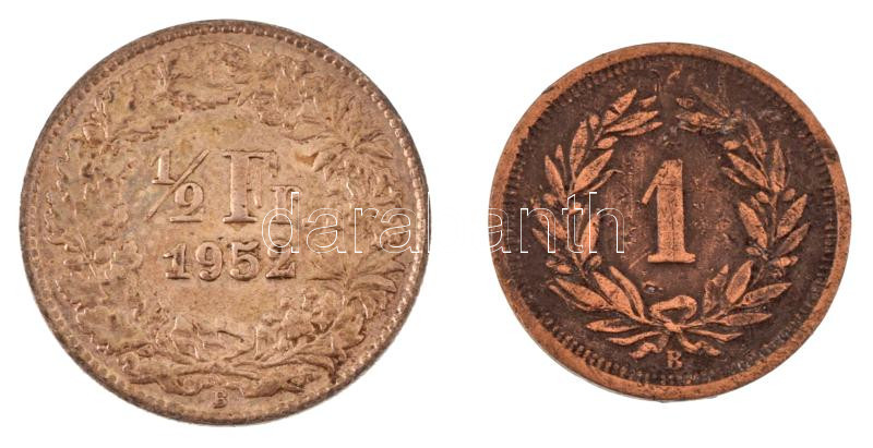 Leírás: Svájc 1914. 1r bronz + 1952. 1/2Fr Ag T:VF,XF patina Switzerland 1914. 1 Rappen bronze + 1952. 1/2 Franc Ag C:VF,XF patina