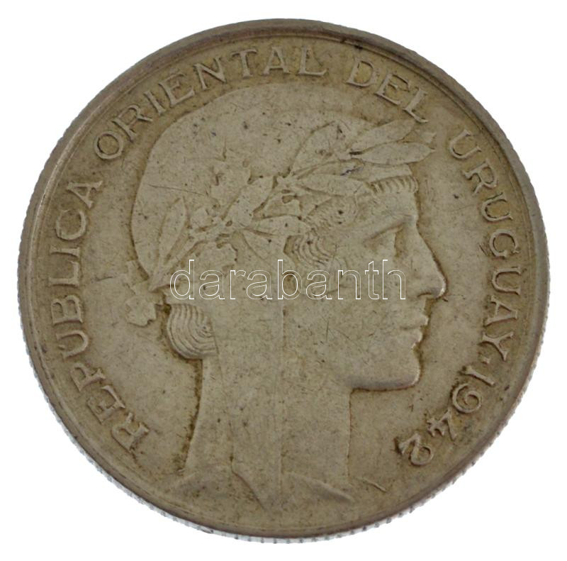Krause ... https://www.darabanth.com/hu/457-Gyorsarveres/457.0/Numizmatika/Kulfoldi-fem-es-ezustpenzek~16/Uruguay-1942-20c-Ag-TVF-Uruguay-1942-20-Centesimos-Ag-CVF-Krause-KM2329~II2960709