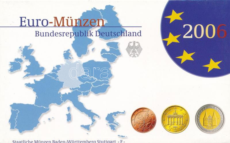 Németország 2006F 1c-2E (8xklf) + 2E "Schleswig-Holstein" forgalmi szett műanyag és papírtokban T:PP Germany 2006F 1 Cent - 2 Euro (8xdiff) + 2 Euro "Schleswig-Holstein" coin set in plastic and paper case C:PP