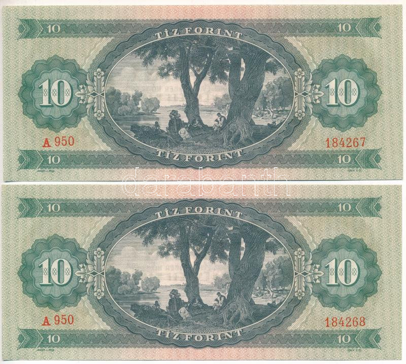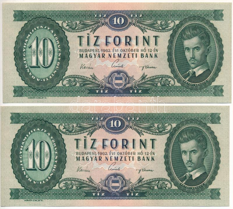 Leírás: 1962. 10Ft (2x) sorszámkövetők "A 950 184267 - A 950 184268" kis nyomdai papírránccal T:UNC,AU