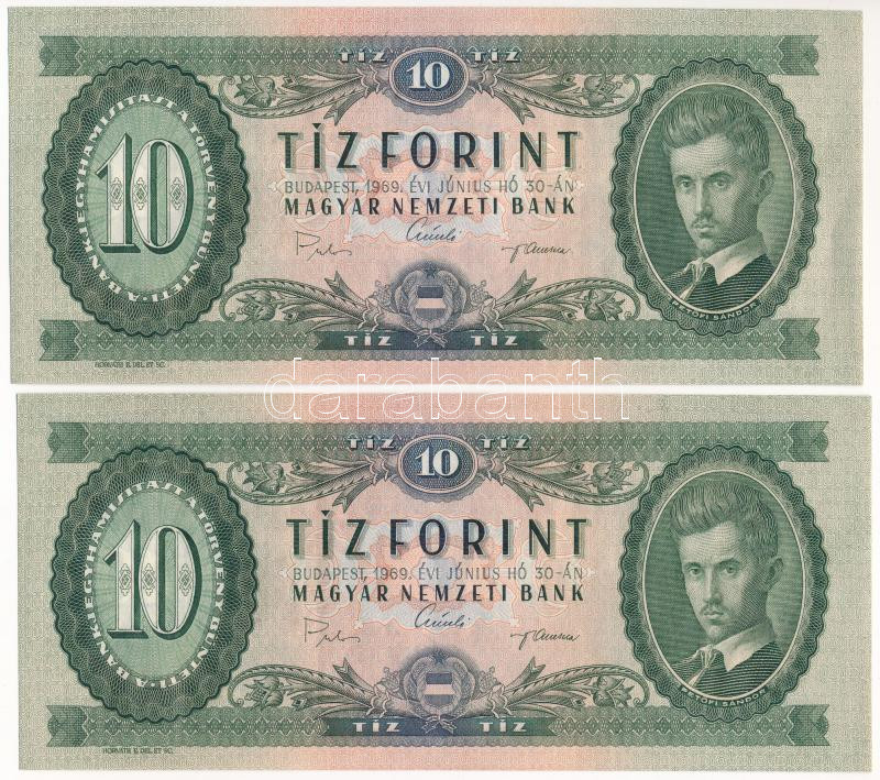 Leírás: 1969. 10Ft (2x) sorszámkövetők "A 956 001797 - A 956 001798" T:AU,XF Adamo F7