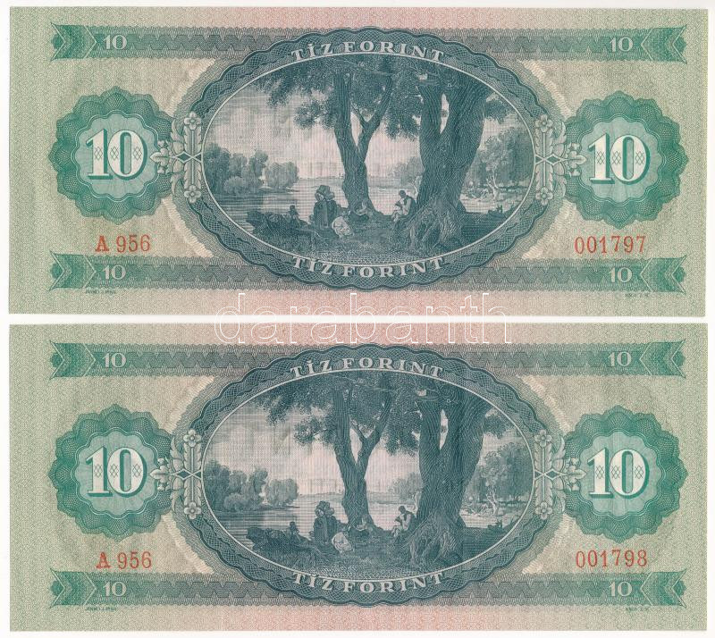 1969. 10Ft (2x) sorszámkövetők "A 956 001797 - A 956 001798"... https://www.darabanth.com/hu/457-Gyorsarveres/457.0/Numizmatika/Magyar-bankjegyek~8/1969-10Ft-2x-sorszamkovetok-A-956-001797-A-956-001798-TAU-XF-Adamo-F7~II2924562