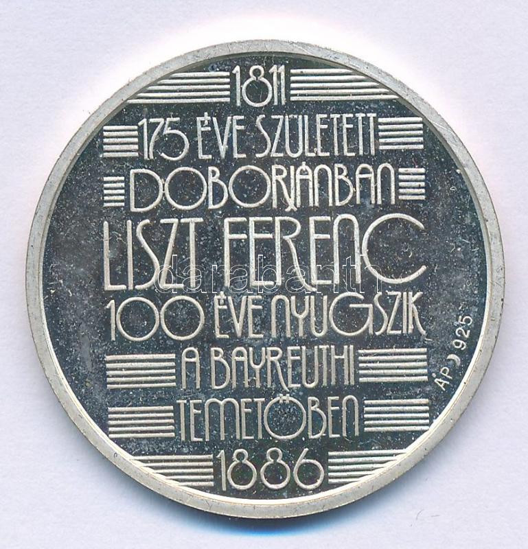 Fülöp Zoltán (1951-) 1986. "175 éve született Doborjánban Liszt Ferenc - 100 éve nyugszik a bayreuthi temetőben" Ag emlékérem (12,10g/0.925/32mm) T:AU (PP)