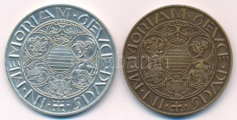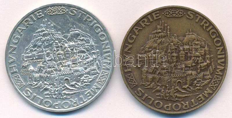 Leírás: Peternák Gusztáv (1928-) 1988. "MÉE Budapest / Hungarie Strigonium Metropolis" Ag és bronz emlékérem pár (25,15g/0.800/42,5mm) T:UNC,AU