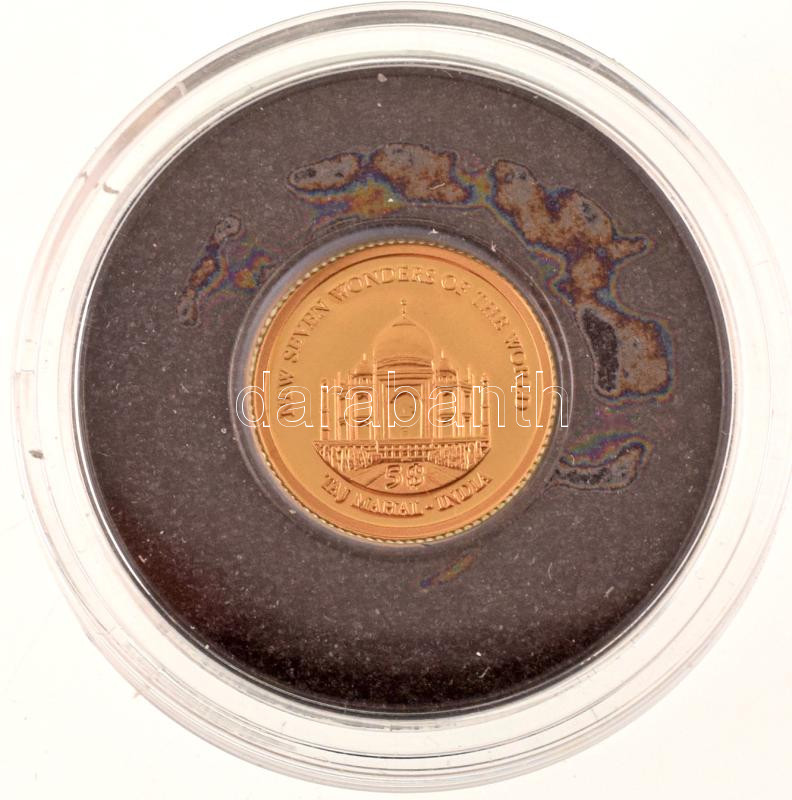 Salamon Szigetek 2013. 1$ Au "A világ 7 új csodája - Taj Mahal", "A világ legkisebb arany érméi" tanúsítvánnyal (0,5g/0,585) T:PP