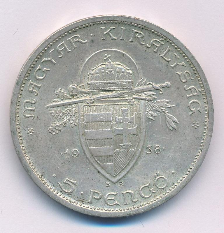 Leírás: 1938. 5P Ag "Szent István" T:AU patina Adamo P8.1