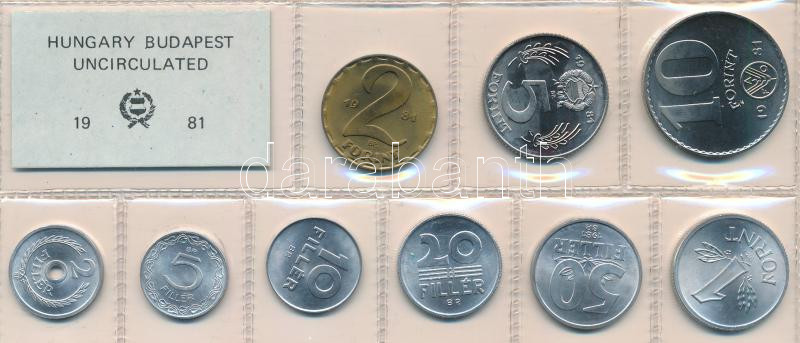 Leírás: 1981. 2f-10Ft (9xklf) érmés forgalmi sor fóliatokban T:UNC Adamo FO14