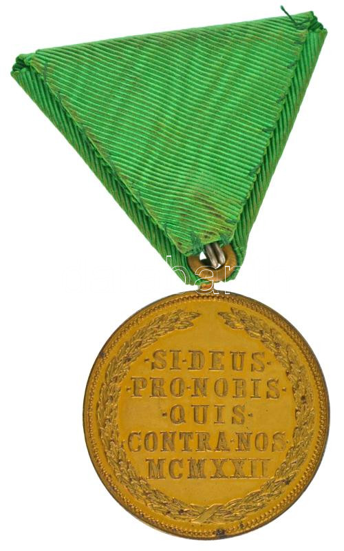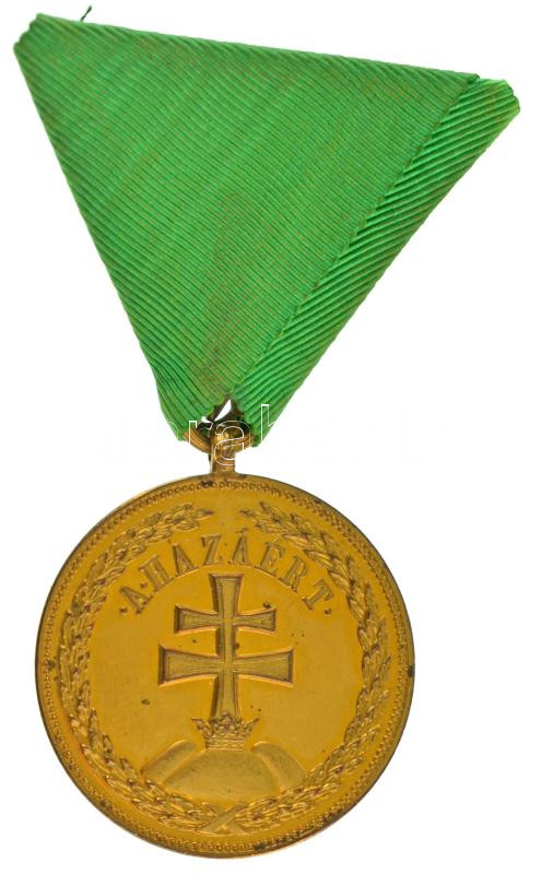 Hungary 1922. "Hungarian Bronze Merit Medal" gold plated bronze decoration with "Bronz" hallmark on the edge, with ribbon C:AU,XF slightly worn gilt, small scratch