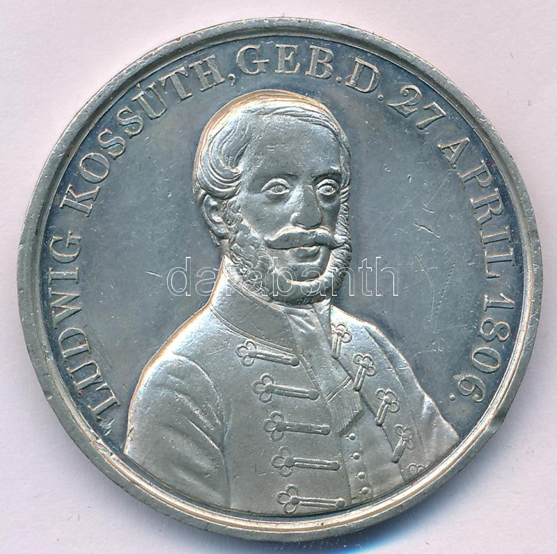 1849. "LUDWIG KOSSUTH GEB. D. 27. APRIL 1806 / GOTT BESCHÜTZE UNGARN (Kossuth Lajos született 1806 április 27-én / Isten óvja Magyarországot)" kétoldalas Sn emlékérem (41mm) T:VF ph.
