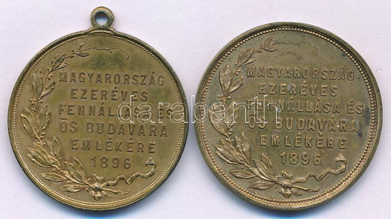 1896. "Magyarország ezeréves fennállásának és ős Budavára emlékékre 1896 / 1687" kétoldalas bronz emlékérem (2xklf: egyik 30mm fül nélkül, másik 29mm füllel) T:AU patina