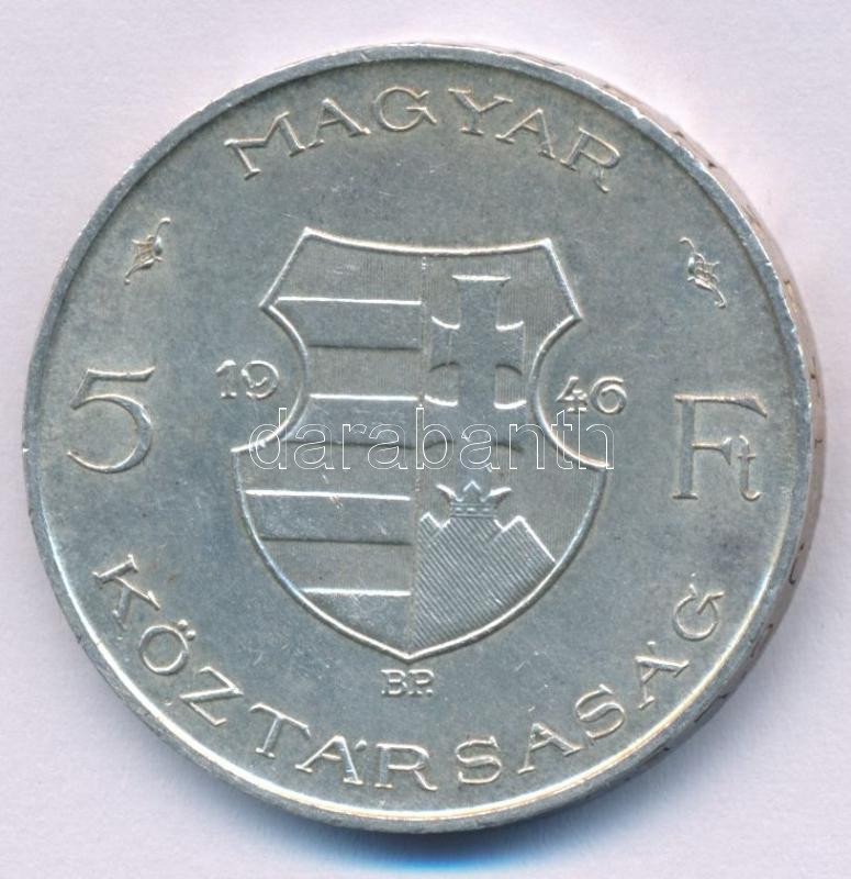 Ad... https://www.darabanth.com/hu/457-Gyorsarveres/457.0/Numizmatika/Numizmatikai-tetelek-rendkivul-alacsony-kikialtasi-aron~1/1946-5Ft-Ag-vastag-Kossuth-TAU-XF-kis-ph-kis-paitna-Adamo-F8~II3049486