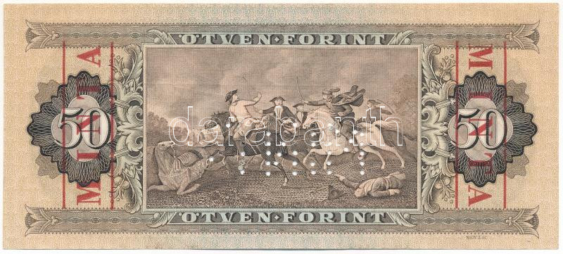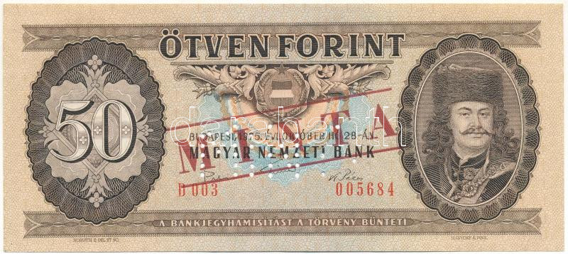 Leírás: 1975. 50Ft "D 003 005684" piros "MINTA" felülnyomással és perforációval T:UNC