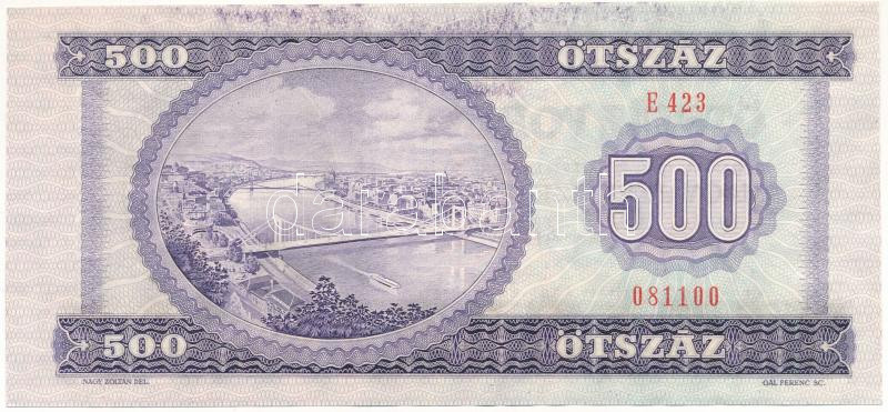 Leírás: 1980. 500Ft "E 423 081100" T:AU erősen hullámos papír, nyomdai festékfoltok