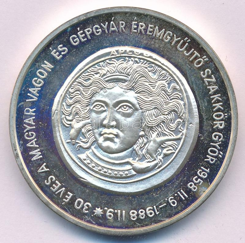 Leírás: Bognár György (1944-) 1988. "30 éves a Magyar Vagon és Gépgyár Éremgyűjtő Szakkör Győr" Ag emlékérem (45,,31g/0.900/43mm) T:AU (PP) Adamo GR3