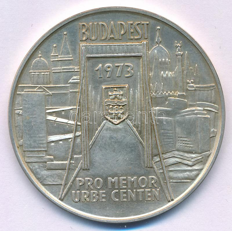 Leírás: Csucs Viktória (1934-) 1973. "Pest - Buda - Óbuda - 1873 / Budapest 1973 - Pro memor urbe centen" peremen jelzett Ag emlékérem (25,47g/0.800/42,5mm) T:AU
