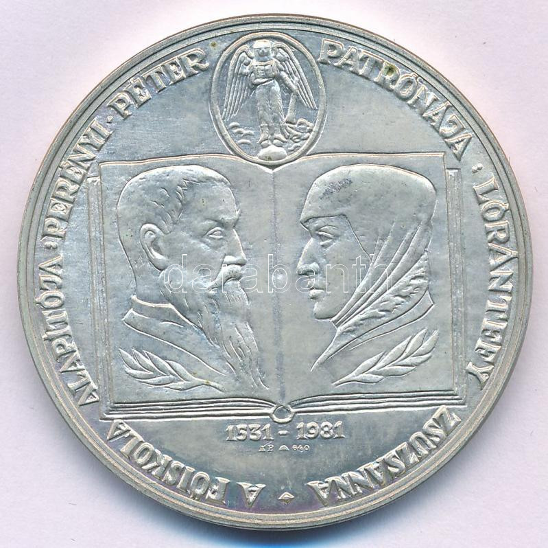 Kelemen Kristóf (1922-2001) 1981. "MÉE XI. Vándorgyűlése - Sárospatak / A főiskola alapítója: Perényi Péter - Patrónája: Lórántffy Zsuzsanna" Ag emlékérem (34,88g/0.640/42,5mm) T:AU Adamo SP1