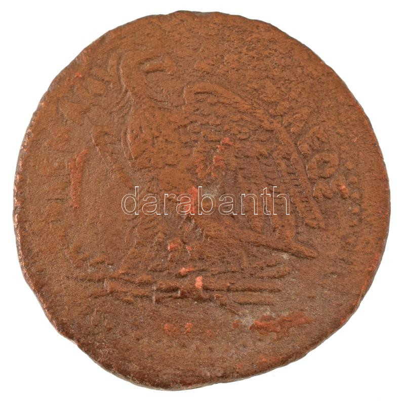 Leírás: Ptolemaida Egyiptom Kr.e. ~III. század AE37 bronz (47,25g) T:F Ptolemaic Egypt ~3rd Century B.C. AE37 bronze "PTOLEMAIOU BASILEWS" (47,25g) C:F