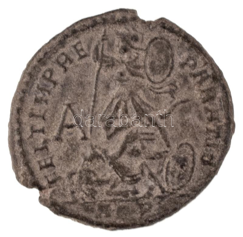 Római Birodalom / Aquileia / II. Constantius 348-350. AE2 (5,61g) T:XF Roman Empire / Aquileia / Constantius II 348-350. AE2 "DN CONSTAN-TIVS PF AVG - A / FEL TEMP RE-PARATIO - A - AQP dot" (5,61g) C:XF RIC VIII 113/147