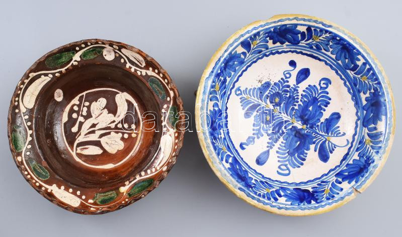 Leírás: 2 darab tál. Kalotaszeg, Felvidék, 19. sz. második fele, restauráltak, d: 21-24 cm
